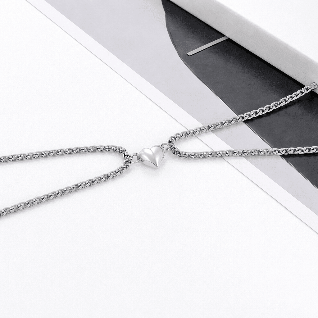 Ce lot de deux colliers aimantés permet aux couples de porter un bijou qui s’attache littéralement l’un à l’autre.