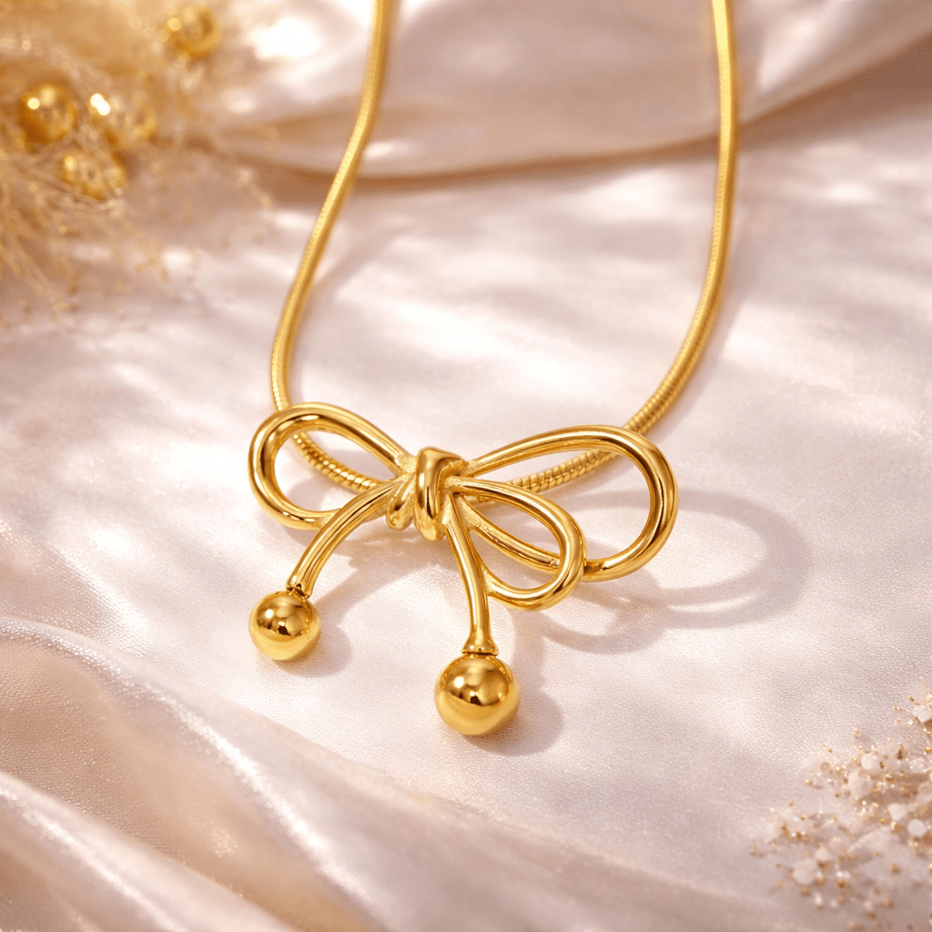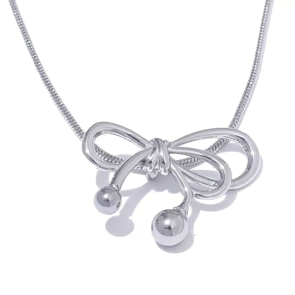 Son pendentif en forme de nœud symbolise l’attachement et les liens précieux, avec une finition lumineuse qui attire subtilement la lumière.