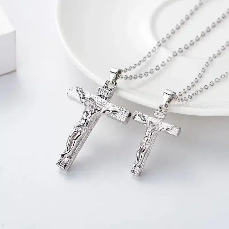 Ce collier pendentif Jésus croix couple vous offre deux colliers assortis pour partager votre foi à deux.