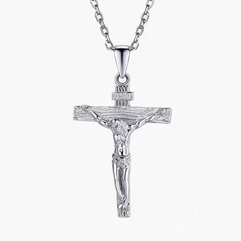 Le pendentif croix avec Jésus sculpté dessus apporte une dimension spirituelle forte à votre tenue.
