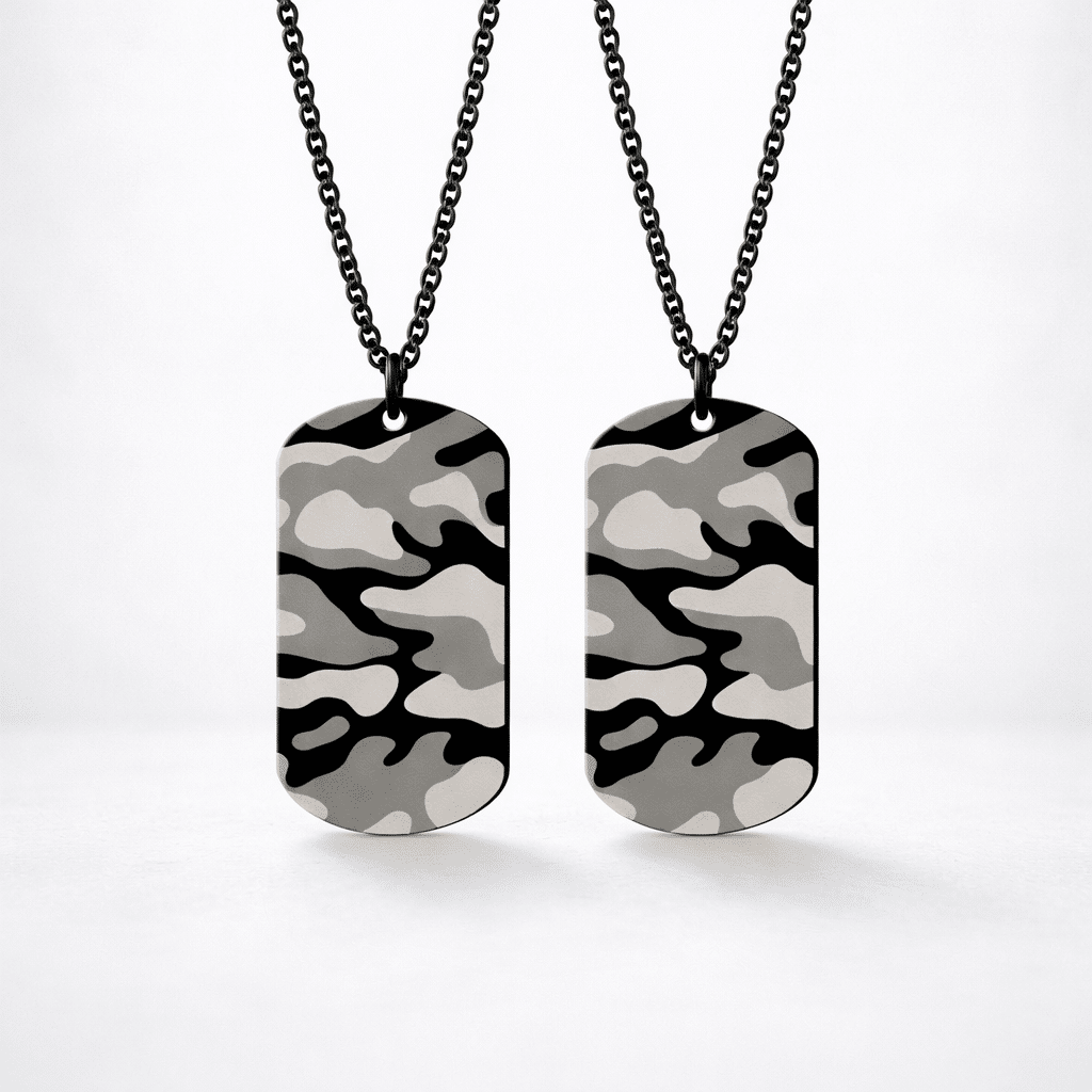 Ce duo de colliers exprime votre personnalité forte et votre goût pour l’esthétique militaire.