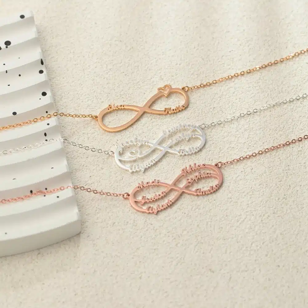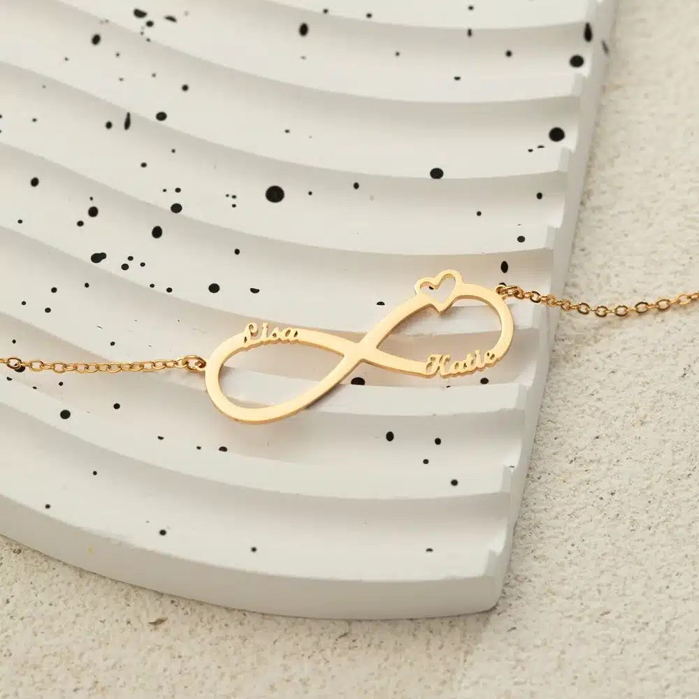 Ce collier symbole couple fort infini personnalisé affiche un pendentif en forme d’infini qui représente l’amour durable et le lien entre deux personnes de façon élégante.