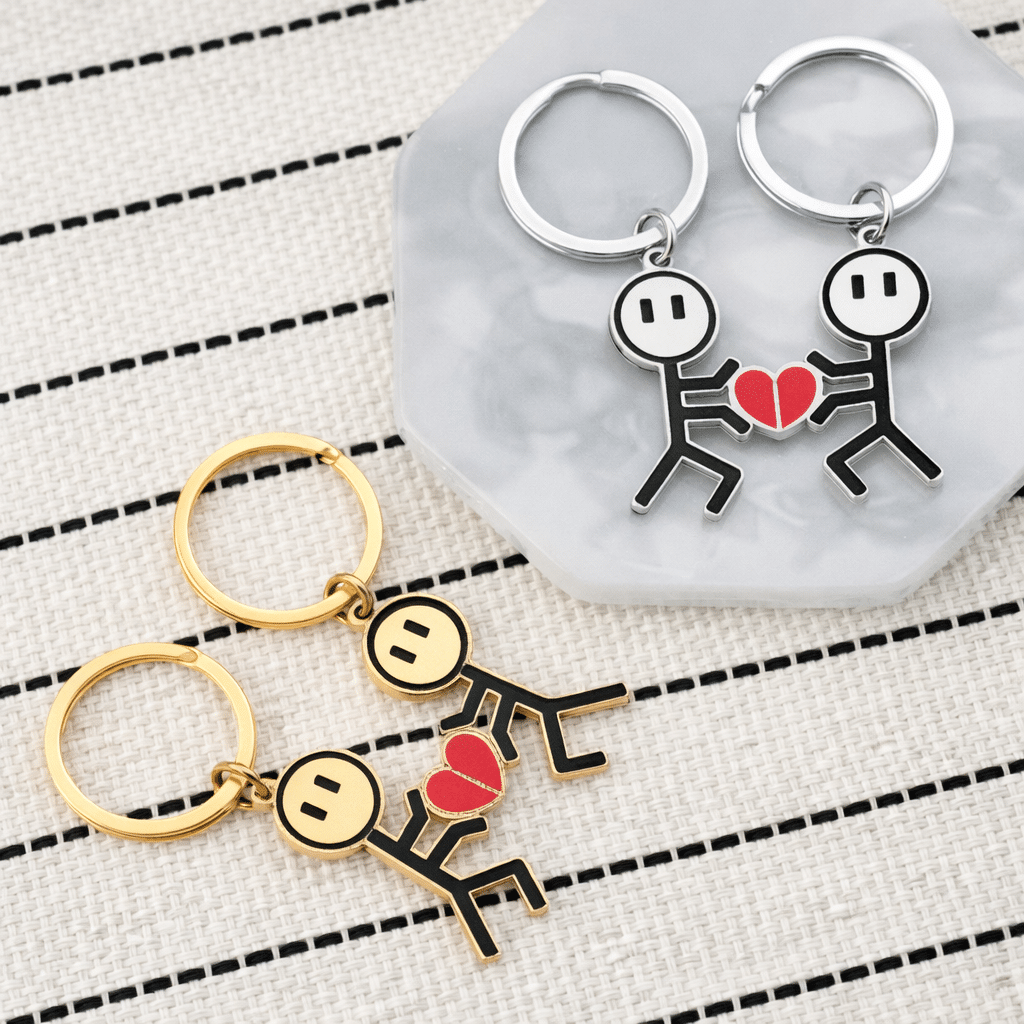 Le porte clés couple dessin est parfait comme petit cadeau complice à ta moitié tout en ajoutant une note fun et discrète à ton trousseau.