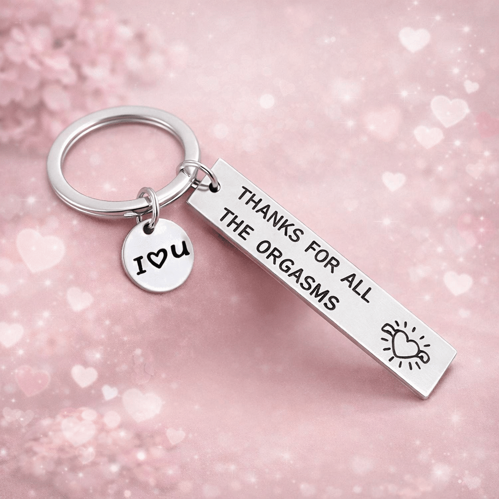 Le message “Thanks for all the orgasms” gravé avec un petit cœur ajoute une touche humoristique qui plaira à ton partenaire, parfait pour un cadeau complice et amusant.