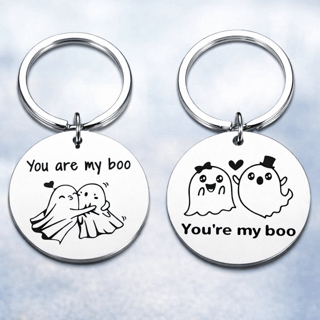 Ce porte-clés romantique fantôme se compose d’un lot de deux médailles rondes argentées qui forment un ensemble assorti pour vous et votre partenaire.