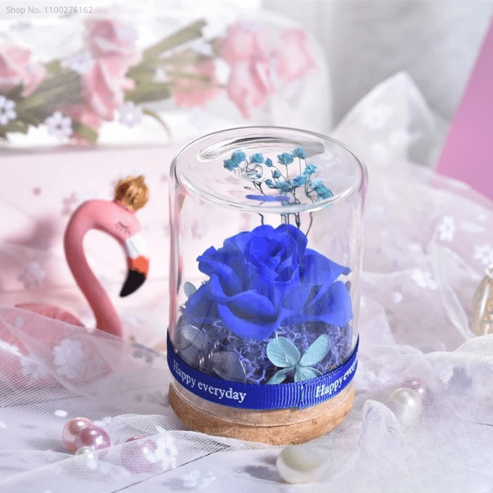 Protégée sous un couvercle en verre, cette rose éternelle couvercle verre garde tout son éclat sans jamais faner.
